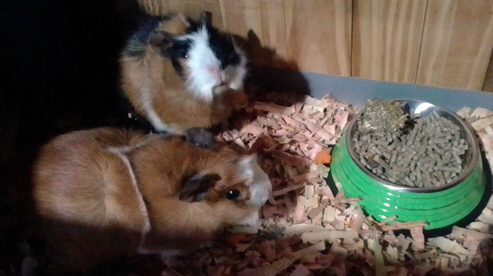 Comen pasto, alimento para conejos, cubitos de alfalfa, zanahorias, achicoria, tomate, acelga y algunas otras verduras permitidas. Les encanta tomar mucha agua en el bebedero para roedores. Eso sí, “todos los días hay que limpiar la jaulita así no se enferman y no hay olor en la jaula. Al terminar de limpiar quedan contentas y lo podemos notar porque dan pequeños saltos y corren de aquí para allá”.