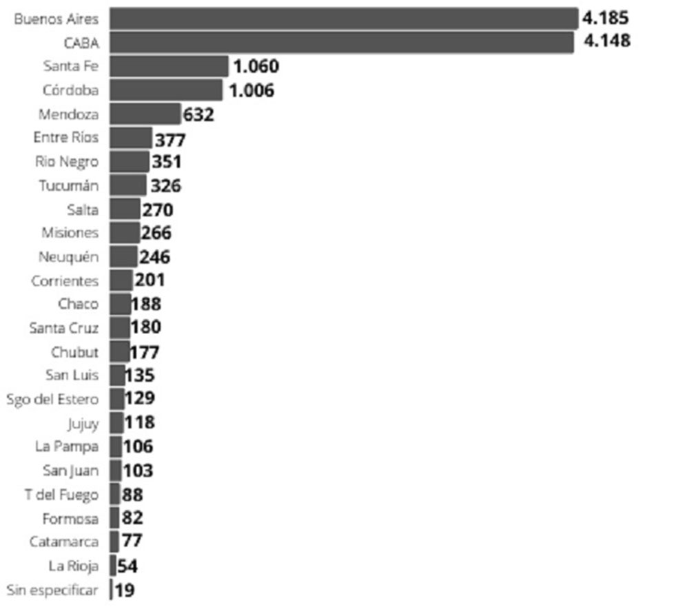 En el fondo del ranking nacional, encontramos que los últimos tres lugares en volumen de empresas corresponden a provincias del NEA-NOA: Formosa, Catamarca y La Rioja, en ese orden, con 82, 77 y 54 empresas, respectivamente.
