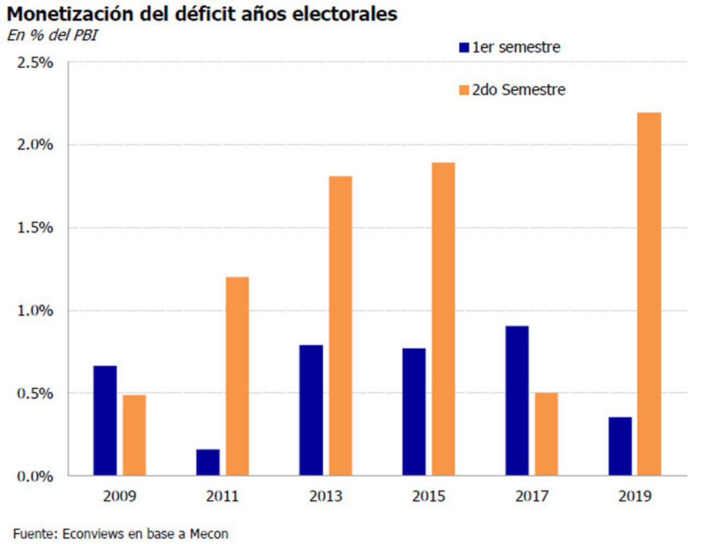 La entidad remarcó que en los años signados por las campañas electorales, la emisión monetaria destinada a financiar los déficits fiscales suele incrementarse en el segundo semestre, luego de una mayor severidad en ese sentido en la primera mitad de cada año.