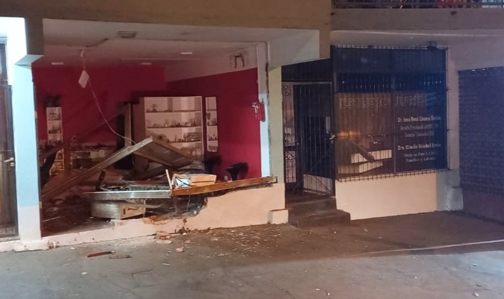 Allí, el dueño de un comercio dormía plácidamente en su domicilio -ubicado en el mismo lugar- cuando un fuerte ruido lo despertó y al salir al exterior, constató que un automóvil perdió el control, chocó la parte frontal de su local comercial y causó destrozos en él. Al observar lo que había pasado, llamó al 911 para alertar lo sucedido.