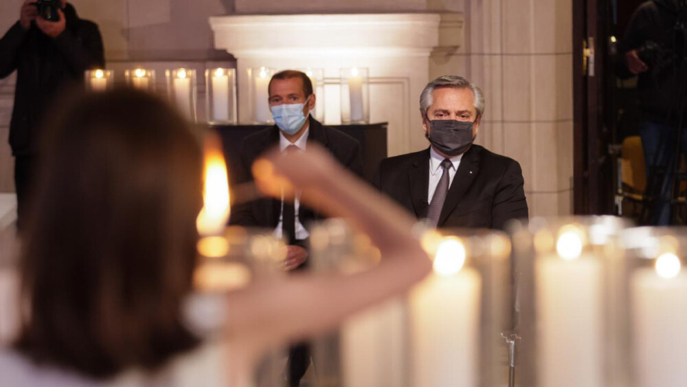 “Un dolor inmenso atraviesa al conjunto de la sociedad por todas y cada una de las personas que fueron víctimas fatales de la pandemia. La pandemia del COVID-19 es una auténtica tragedia que azota a la humanidad. El COVID-19 produce muertes y genera dolor”, remarcó Alberto Fernández.