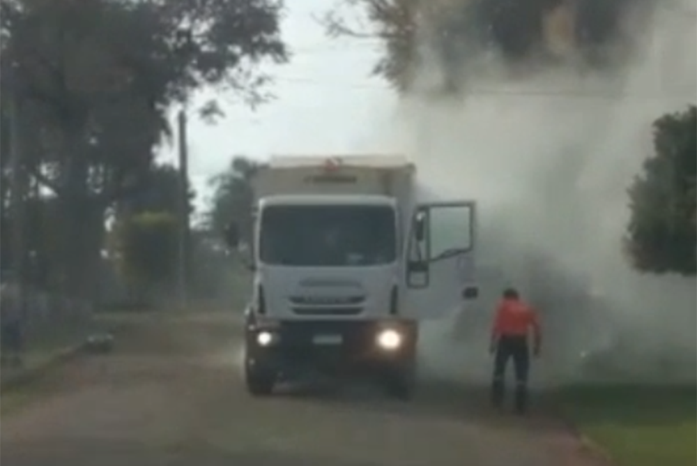 Una vecina filmó el hecho. Los operarios recogieron los residuos y cuando el mecanismo del camión comenzó a compactar las bolsas, se vio la explosión que terminó expulsando un humo blanco al que fueron expuestos los operarios.