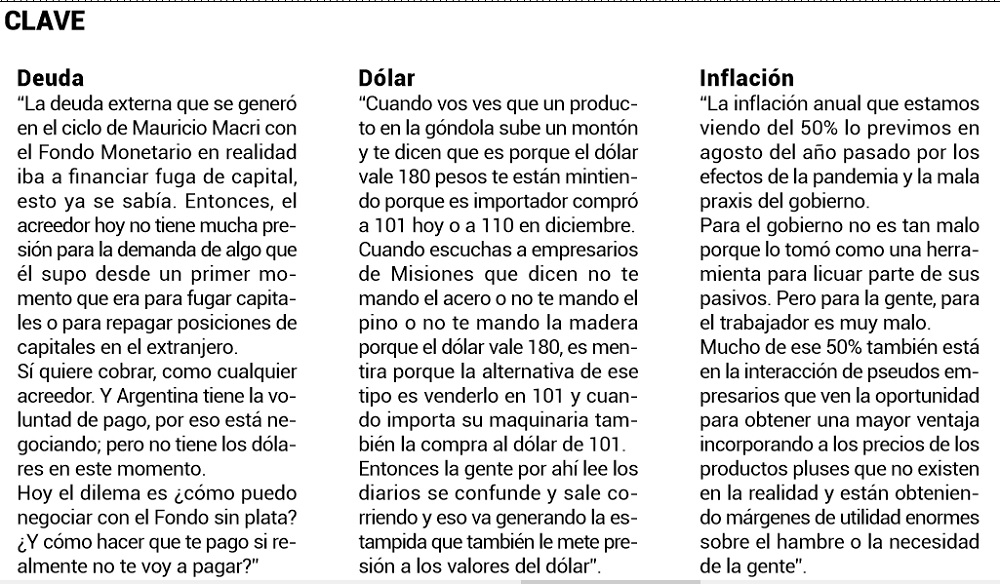 La inflación anual hoy es la que nosotros lo previmos en agosto del año pasado de entre el 50 y el 55% por los efectos de la pandemia y de la mala praxis del gobierno. El número es malo, muy malo.