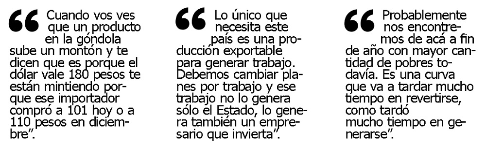 La generación de trabajo no va a ser de un día para el otro y la generación de pobreza, sí. Probablemente nos encontremos de acá a fin de año con mayor cantidad de pobres todavía. La curva de la pobreza es una curva que va a tardar mucho tiempo en revertirse, como tardó mucho tiempo en generarse.