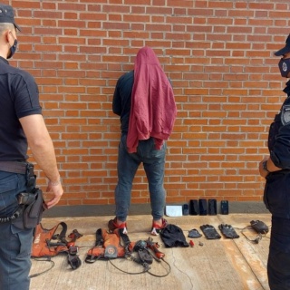 Los primeros procedimientos se concretaron en colonia San Alberto, en Puerto Rico, en una vivienda donde el expolicía provincial de 32 años fue sorprendido y esposado y se le secuestraron elementos o pertrechos de fuerzas de seguridad.