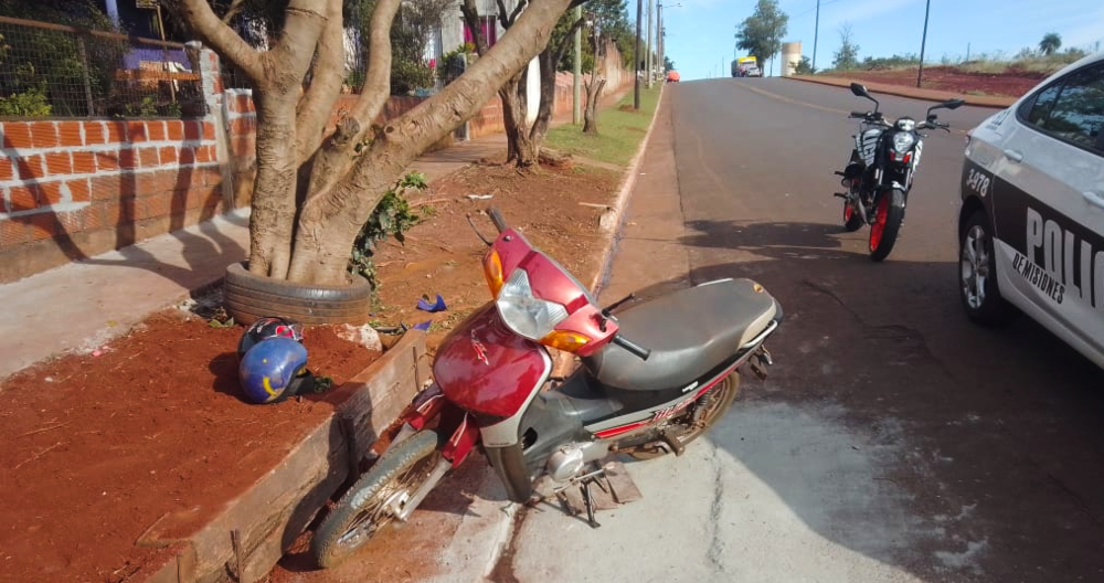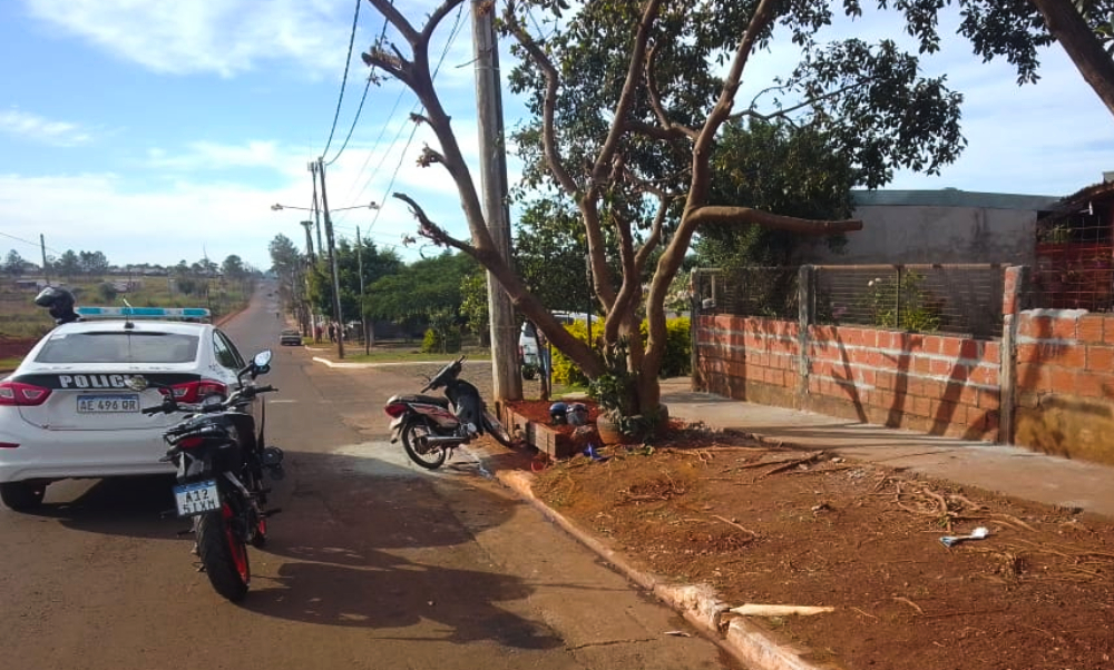 Dos personas resultaron heridas luego de despistar con una moto este martes en el barrio San Isidro de Posadas.