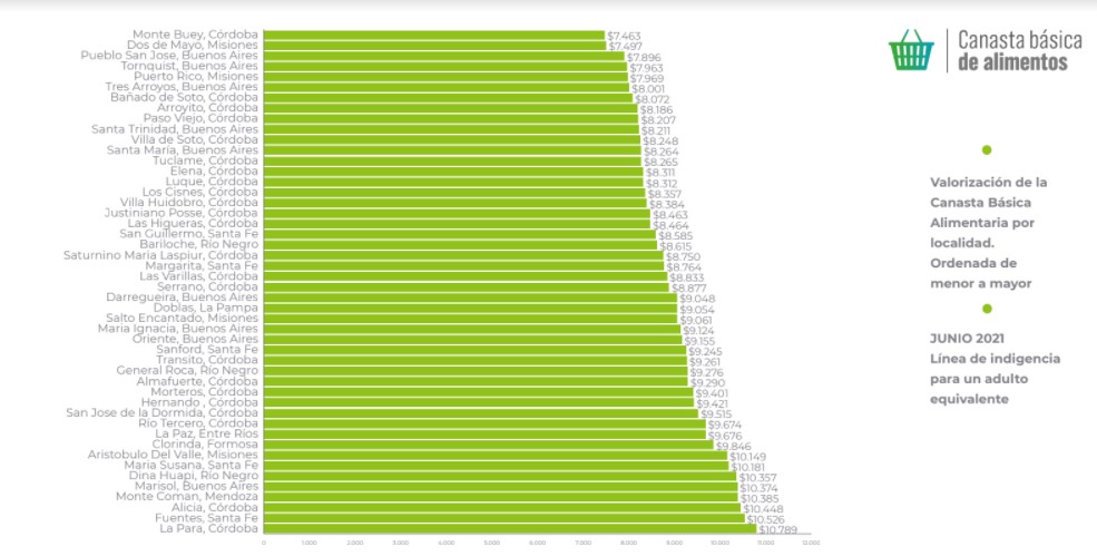 “Es muy valioso conocer cuál es la línea de indigencia en localidades a lo largo de nuestro país. A partir de esa información vamos a poder observar la evolución mensual de los precios de la CBA. Encontramos una dispersión muy importante para analizar a futuro. En este sentido, se observa una distancia mayor al 40% entre localidades de la misma provincia. Por esto es relevante difundir este informe, para poder realizar diversos análisis y poder dilucidar las causas de las diferencias tanto de los precios como de los incrementos”, indicó la socióloga Natalia Calcagno, coordinadora del proyecto.