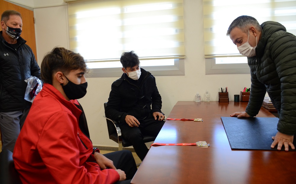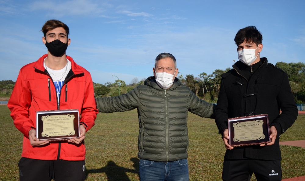 El Ministerio de Deportes reconoció hoy la tarea de los deportistas Lautaro Amarilla y Gastón Benítez, recientemente consagrados campeón y subcampeón Sudamericano U20 de atletismo en jabalina y salto en alto, respectivamente, en Perú.