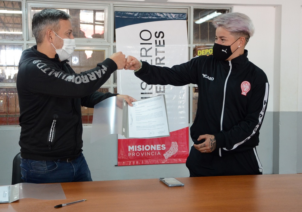 El ministro de Deportes Javier Corti, acompañado por el subsecretario de Deporte Social Barrial Orlando Vargas, fueron los anfitriones de las deportistas durante esta mañana y realizaron la entrega del documento que las menciona como destacadas representantes y talento del deporte misionero.