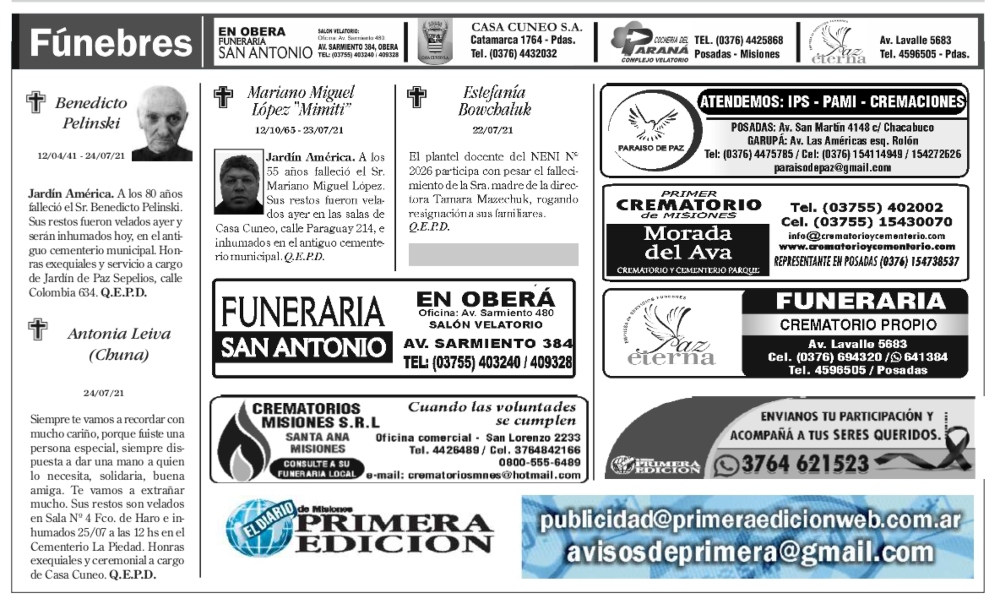 Tags: Fúnebres 24-07-2021