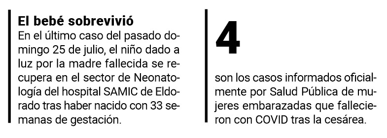 En similares circunstancias, pero en Posadas, una mujer de 31 años murió tras la cesárea el pasado 7 de julio en el hospital Materno Neonatal. Según Salud Pública no se encontraba vacunada. En este caso sí lograron salvar la vida de su bebé.