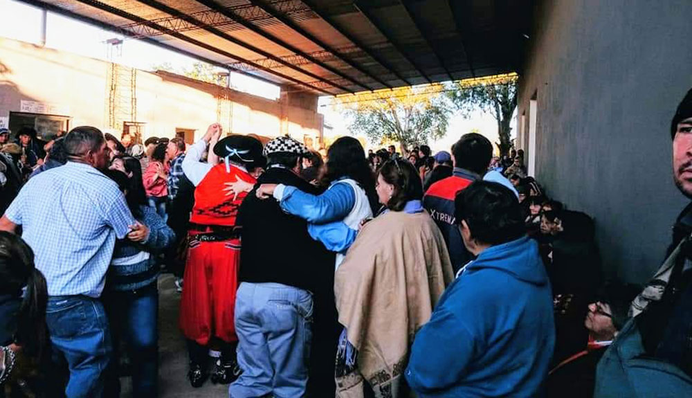 Torres asistió a varios de los festejos que se realizan en honor al Santo Patrono en la propiedad donada por su bisabuelo, Leopoldo Víctor Lanús, que falleció en 1927. El último fue en 2019, tal como ilustra la foto frente al templo, y registra a los vecinos en pleno baile. Contó que, por lo general, antes de la pandemia, “al terminar la misa, en el tinglado se realizaba una peña con conjuntos musicales, todos ataviados, y se genera un encuentro muy interesante”.