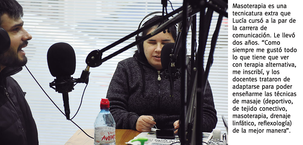 Lucía ya terminó de cursar las materias de la carrera. Así que por estos días “estoy en proceso de tesis”, por lo que tiene un poco más de tiempo para hacer volar la imaginación. “Al terminar de cursar las materias, comencé con las militancias, con el activismo por los derechos de las personas con capacidad. Tengo un poco de tiempo, de alguna manera”, aclaró.