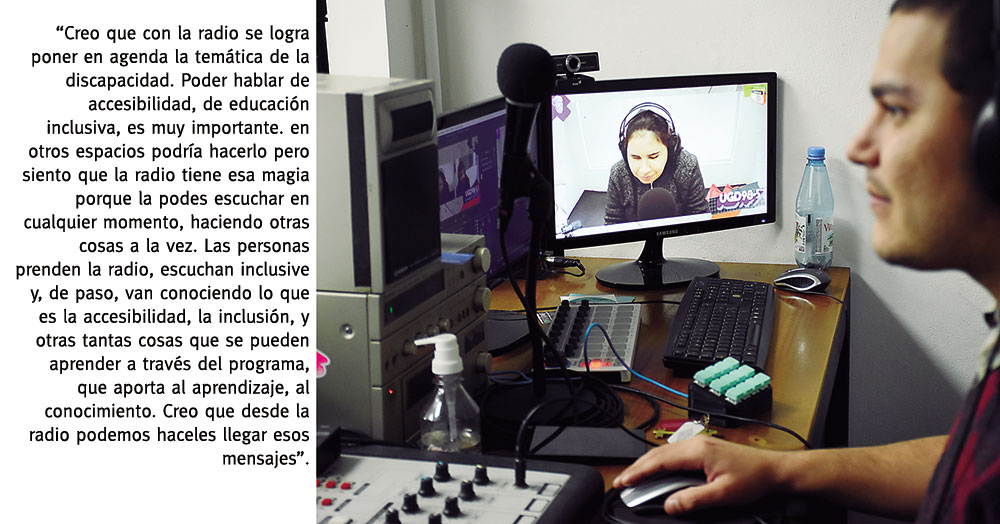 Sostuvo que “aparte de difundir las cosas que hago, sirve para dar voz a otras personas con discapacidad, que cuenten las tantas cosas que venimos haciendo, que merecen difusión. Me parece interesante que la discapacidad sea un tema que esté en la agenda, en los medios, sobre todo, dándole un tratamiento responsable, de buenas prácticas, porque sabemos que muchas veces en los medios de comunicación el trato que se le da a la discapacidad es estigmatizante, con un enfoque de lástima, y la idea es ir erradicando, terminando con eso. Es importante que se vea la discapacidad desde un modelo social, que es uno de los paradigmas de la Convención Internacional sobre los Derechos de las Personas con Discapacidad”.