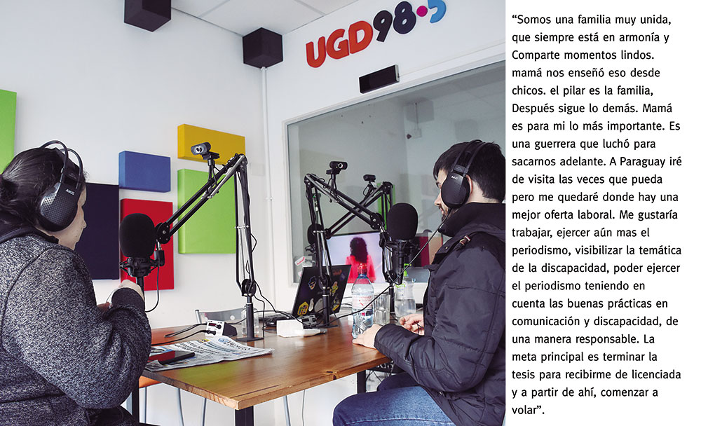 “Me hablaron de una universidad pública y como conocía un poco la capital misionera y me vinculaba con personas de Paraguay que cursaban carreras acá, me propuse hacer el intento”, declaró, minutos antes de iniciar “Inclusive”, el programa de discapacidad que se emite por la 98.5 Radio UGD, de la Universidad Gastón Dachary, los miércoles de 16 a 18.