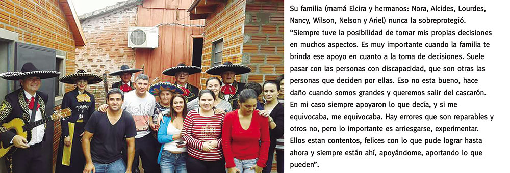 También forma parte de la Federación Argentina de Instituciones de Ciegos y Amblíopes; del Movimiento de Mujeres Libres y Empoderadas de Misiones, y del Movimiento de Estudiantes en Unidad. Escribe sobre discapacidad para ediciones de Buenos Aires, y utiliza el programa de radio que conduce para difundir todas estas actividades. Nació en Paraguay y si bien no puede viajar debido a las restricciones de la pandemia, destacó la unión de su familia. “Nunca me sobreprotegieron. Siempre tuve la posibilidad de tomar mis propias decisiones en muchos aspectos. Están contentos con lo que pude lograr hasta ahora”, confió.