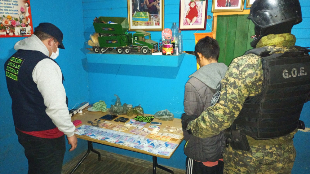 En el lugar, los investigadores montaron un operativo de vigilancia. Pasadas las horas, los efectivos interceptaron a un joven de 19 años, quien momentos antes ingresó al inmueble y tenía en su poder cuatro gramos de marihuana, por lo cual, con apoyo del Grupo de Operaciones Especiales (GOE) irrumpieron en el kiosco narco.