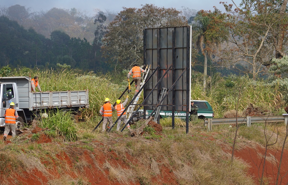 La Dirección Nacional de Vialidad comenzó a sacar carteles en las rutas de su jurisdicción a su paso por Misiones, ya que está prohibida la colocación de cartelería de cualquier tipo en la zona de camino como así también en intersecciones, puentes, obras de arte, pasarelas peatonales y luminarias circundantes a las rutas nacionales, de acuerdo a lo establecido en el artículo 26 de la Ley Nacional de Tránsito N°24.449.