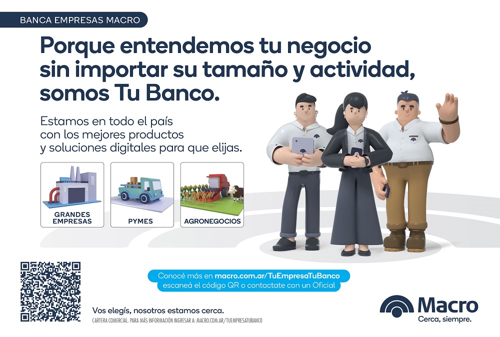 “Somos el Banco mas importante del país en el segmento empresas. Trabajamos codo a codo con nuestros clientes. Por eso nos eligen“, sentenciaron desde Banco Macro.