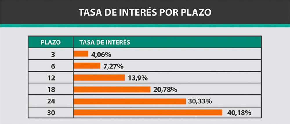 La tasa de interés nominal anual se mantuvo en 25%, lo que implica que el sobrecosto máximo que puede cobrar un comercio al consumidor es del 4,06% en el caso de las 3 cuotas; 7,27% con 6; 13,90% con 12; y 20,78% con 18 cuotas.