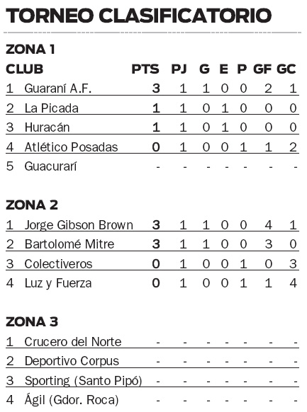 En tanto, también esta tarde, en Santo Pipó, se abrirá el telón de la zona 3, con los choques que protagonizarán Sporting ante Ágil y Crucero frente a Corpus.