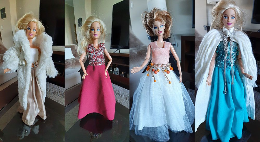 Cuenta que “el año pasado durante la pandemia comencé a hacer los vestidos para las Barbies. Hacía tiempo que quería comenzar y recién el año pasado lo hice”. Cada creación es única porque “es una inspiración completa que se inicia con la elección de las telas, los colores, las combinaciones. Miro una tela y comienzo a imaginar cómo puedo combinar, qué forma le daré y qué accesorios irán mejor”, porque sí, también crea los accesorios, cintos bordados, collares, carteras, pulseras.