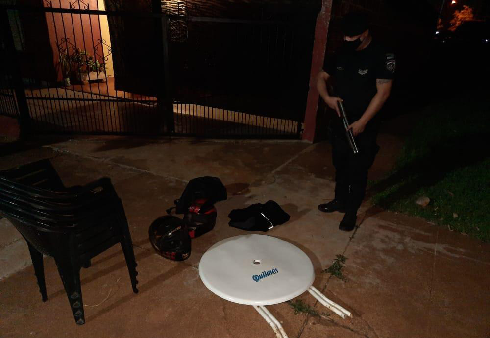 Inmediatamente integrantes del Comando Radioeléctrico Oeste llegaron a la casa ubicada sobre la calle 177, donde detuvieron a uno de los involucrados quien abandonó varios objetos e intentó escapar sin éxito.