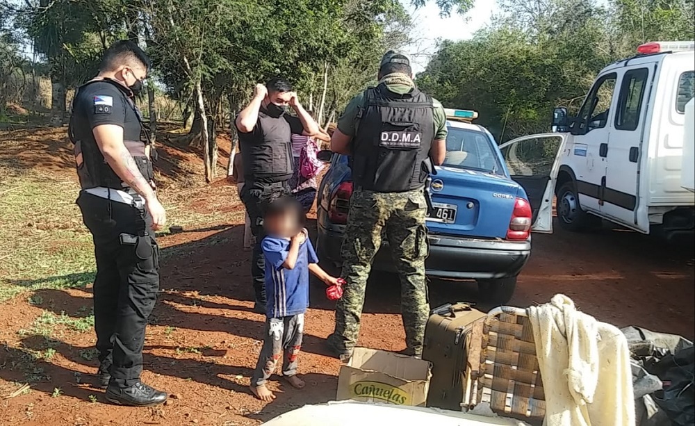 Los efectivos, en el marco de los rastrillajes que se vienen realizando para la prevención de incendios, detectaron llamas en un pastizal a la altura del kilómetro 1.603 de la ruta nacional 12 y al mismo tiempo divisaron en las inmediaciones a la mujer y sus pequeños, integrantes de la aldea Guapo’y.