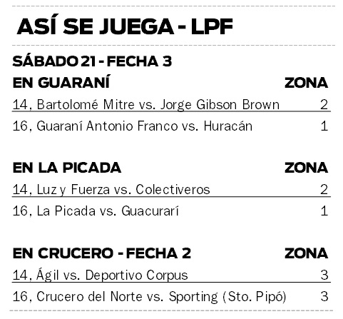Sin lugar a dudas que lo más atractivo estará en Villa Sarita, donde desde las 14, se medirán Bartolomé Mitre y Jorge Gibson Brown, por la zona 2; mientras que el segundo turno, desde las 16, lo harán Guaraní Antonio Franco y Huracán por la zona Zona 1.