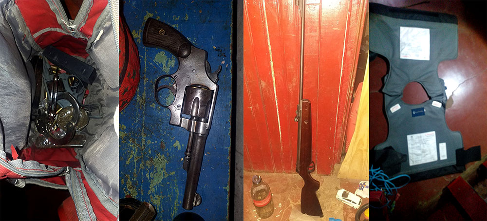 Todo habría comenzado por un hecho de amenazas y lesiones con arma de fuego. Hasta ahora, en el procedimiento se secuestraron un revolver, armas de fabricación casera, municiones de escopeta, un chaleco antibalas, una granada de humo, un rifle de aire comprimido, dinero en efectivo, cuatro teléfonos celulares, y detuvieron a los sindicados cuando intentaba huir del lugar.