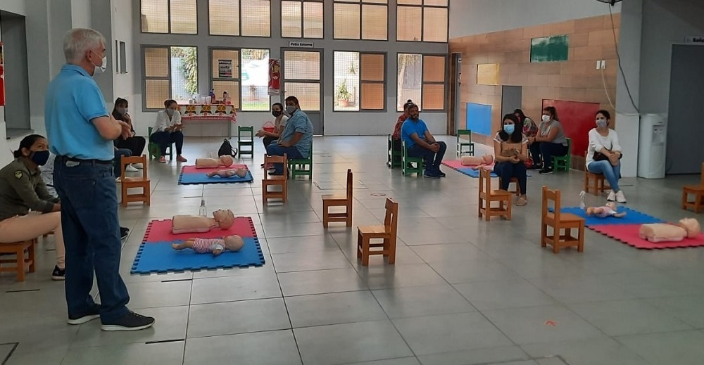 El evento que se desarrolló en el Jardín Maternal “Emilio Gosttchalk” en conjunto con el Centro de Desarrollo Infantil y Estimulación Temprana “Taity” y la Asociación Civil “A Mano” tuvo como eje central la reanimación cardiopulmonar y primeros auxilios en pacientes pediátricos.