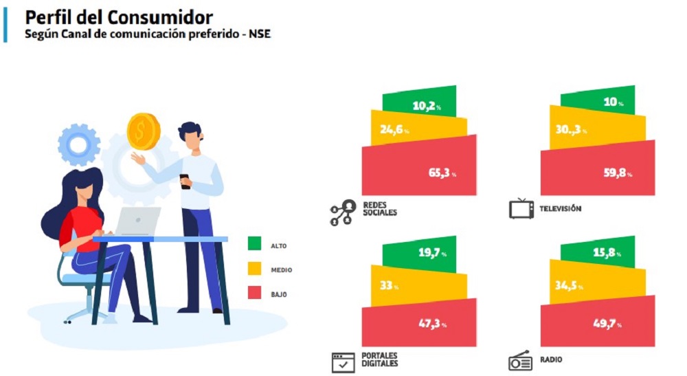 Por su parte, los consumidores de televisión integran mayormente la generación de los mayores de 56 años y seis de cada diez pertenecen a un nivel socioeconómico bajo. Ambas condiciones explican su principal preocupación: el acceso al trabajo. A diferencia de los demás segmentos, las oportunidades de desarrollo no son el principal problema para un sector cuyo aspiracional parece estar limitado a la necesidad, a la urgencia del “mes a mes” o del “día a día”.