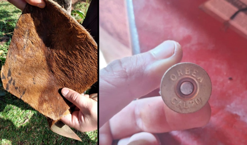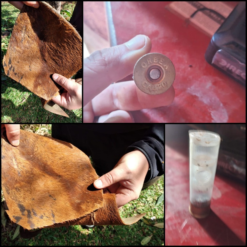 También se incautaron dos vainas servidas calibres 20 y 36, además de restos que corresponderían al animal faenado.