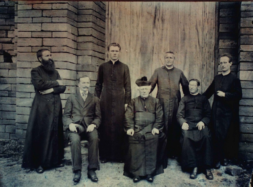 Sacerdotes y pastores de distintos ritos, en compañía de los inmigrantes en los primeros años, tras su llegada a Apóstoles.