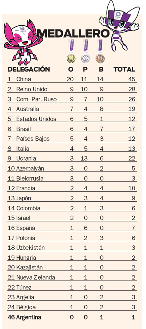 Por otra parte, la entrerriana Antonella Ruiz Díaz ganó la primera medalla de la delegación argentina en los Juegos Paralímpicos, luego de conseguir el bronce en la prueba de lanzamiento de bala.