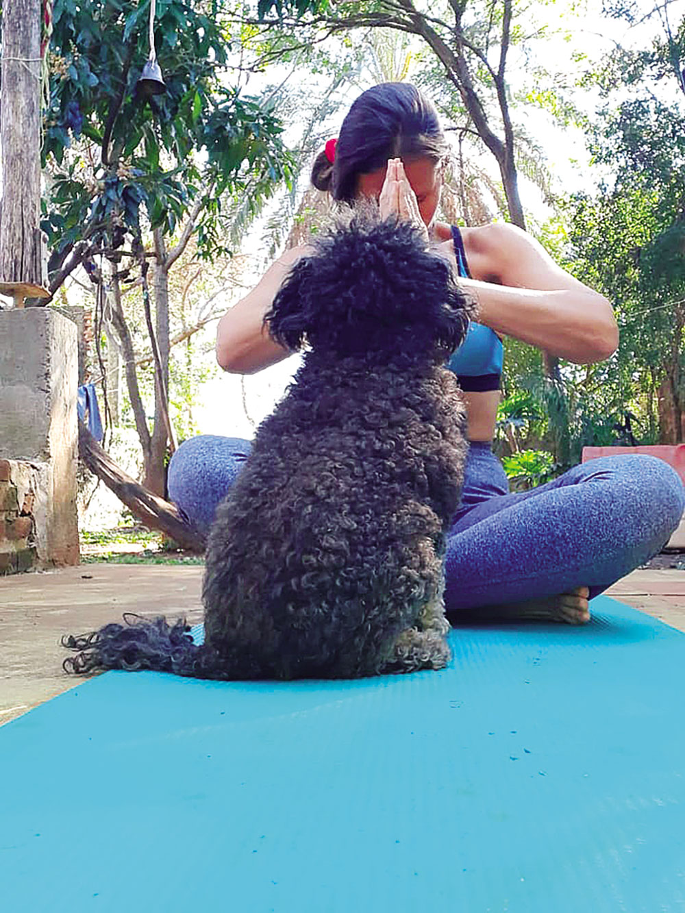 Cómo es ser mascota de Sandra De Marchi y de su niña Maia, ambas mujeres llenas de una energía arrolladora, de mucha fuerza, de casi constante movimiento y también de calma, meditación y yoga. Allí está ella, Bianca, la caniche que medita y unifica acompañando a Sandra.