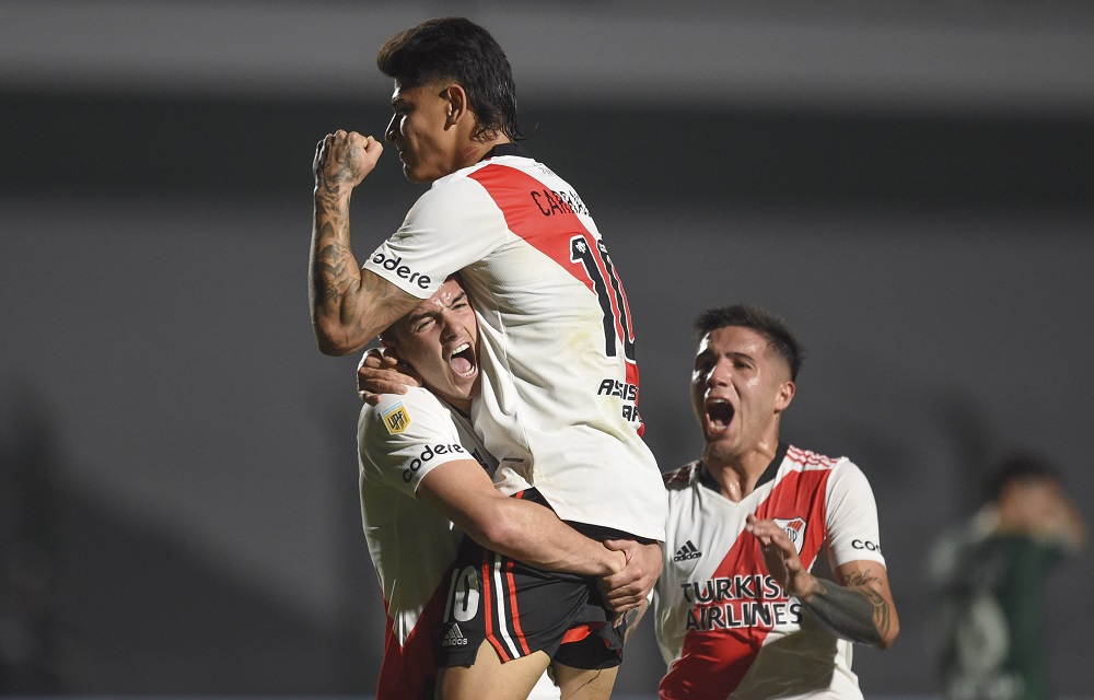 River Plate, pese a las múltiples ausencias por citaciones a seleccionados y lesiones, rescató hoy una victoria tan agónica como valiosa en Junín, donde superó por 2 a 1 a Sarmiento con otro gol sobre el epílogo del encuentro de Enzo Pérez, en un encuentro de la novena fecha de la Liga Profesional que lo tiene entre los protagonistas que pelean en el lote de punta del campeonato.