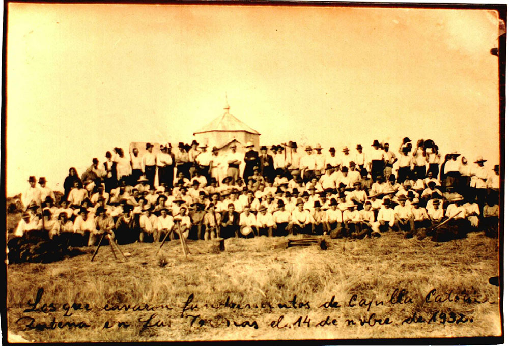Dice el texto escrito en la foto: “Los que cavaron fundamentos de Capilla Católica Rutena en Las Tunas el 14 de noviembre de 1932”. Decenas de colonos, algunos ya hijos y nietos de los pioneros, congregados en pos de un objetivo común: construir el nuevo edificio de la Capilla.