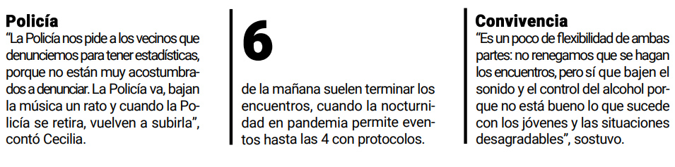 “Porque en el barrio no es solamente el sonido: es despertarnos y tener un montón de borrachos tirados por la zona, levantarme a tener que limpiar el frente de mi casa porque está todo orinado al igual que a muchos vecinos”, continuó.