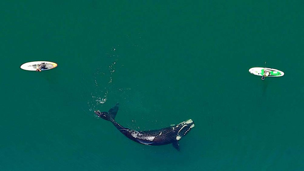 “Creo que hoy hice el mejor video con drone de ballenas de mi vida”, escribió el fotógrafo Maxi Jonas en su cuenta de Twitter, acompañando una toma aérea de 54 segundos en la que una se ve cómo el animal juega con una tabla y su tripulante en las aguas de Puerto Madryn.