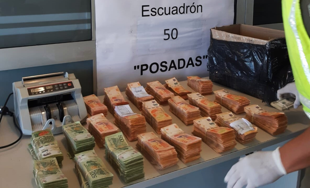 Efectivos del Escuadrón 50 “Posadas” de Gendarmería Nacional secuestraron dos cajas tipo encomiendas en un colectivo que ingresaba a Misiones por la ruta nacional 12 que trasladaban de manera ilegal varios miles de dólares, millones de pesos y hojas de coca.
