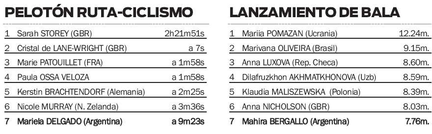 Por su parte, la ciclista Mariela Delgado finalizó la participación con un séptimo puesto en la prueba de pelotón de ruta C4-5. La misionera corrió bajo una intensa lluvia y marcó 2h31m14s y cerró su participación en Tokio 2020.