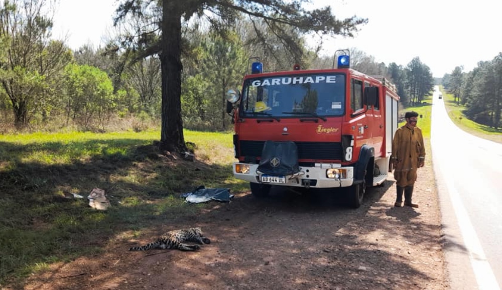 El hecho se conoció este jueves al mediodía cuando Bomberos Voluntarios de esta ciudad fueron alertados sobre un felino muerto a un costado de la arteria, en el kilómetro 1.490, en cercanías a Colonia Luján.
