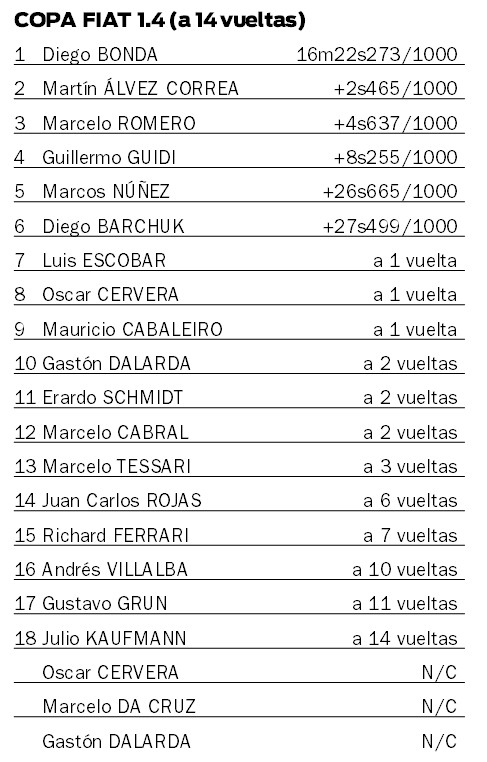 Una de las mayores emociones estuvo, justamente, en los legendarios “fititos”, donde Bonda pudo festejar extraoficialmente su primer campeonato en el automovilismo misionero y darle así otra estrella al Rosa Competición en la Copa Fiat 1.4, donde ya tuvo a Juan Pablo Abente, Nazareno Da Cruz y Carlos De Ley como monarcas.