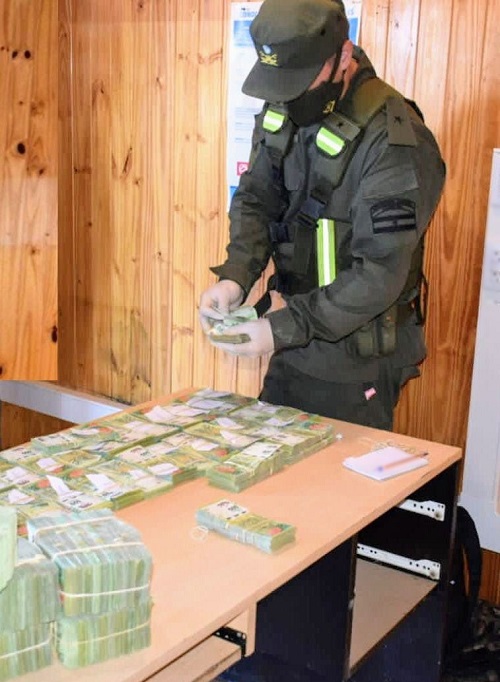 Personal de la fuerza contabilizó el dinero hallado, el cual arrojó un total de 5.498.500 pesos argentinos (en billetes de 500 pesos).
