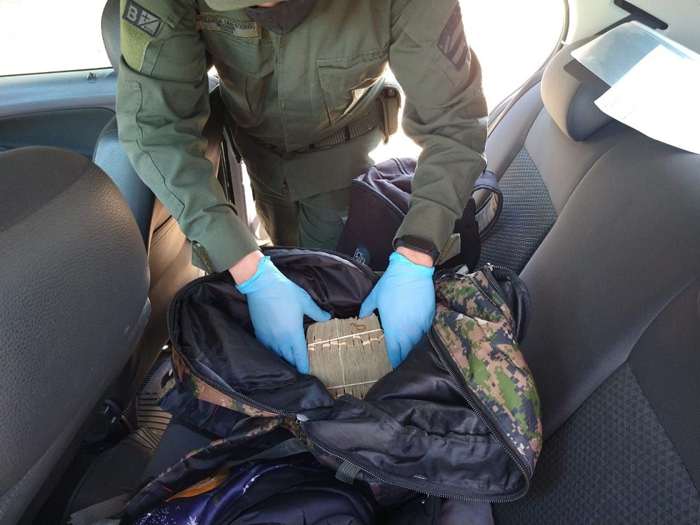 Al llevar a cabo el registro del rodado, los funcionarios detectaron dos mochilas en el asiento trasero que contenían fajos de billetes de moneda nacional de curso legal.