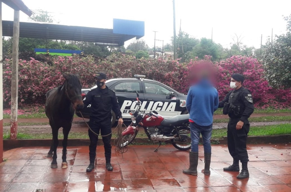 Por el hecho, fue detenido el joven de 20 años en cuya propiedad estaba el equino, y además incautaron una motocicleta de 150 cc que estaba oculta en una zona de malezas y sería propiedad del demorado.
