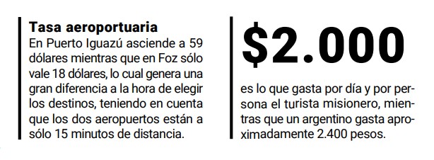 En ese aspecto el ministro señaló que “necesitamos que la Nación nos ayude con la Tasa Aeroportuaria, que vale 18 dólares en Foz y 59 dólares en Puerto Iguazú. “No da ni para sentarse a hablar con una línea aérea cuando tenemos una tasa así”, dijo, enfatizando que van todos a Foz que se ubica a sólo 15 minutos de Iguazú.