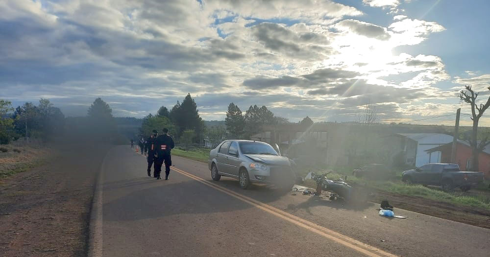 Este jueves por la tarde, un hombre de 70 años, a bordo de un Fiat Siena, y una mujer de 32, en una motocicleta de 150cc, chocaron por causas que se tratan de establecer sobre la ruta provincial 103, a 1.500 metros del acceso a Campo Ramón.