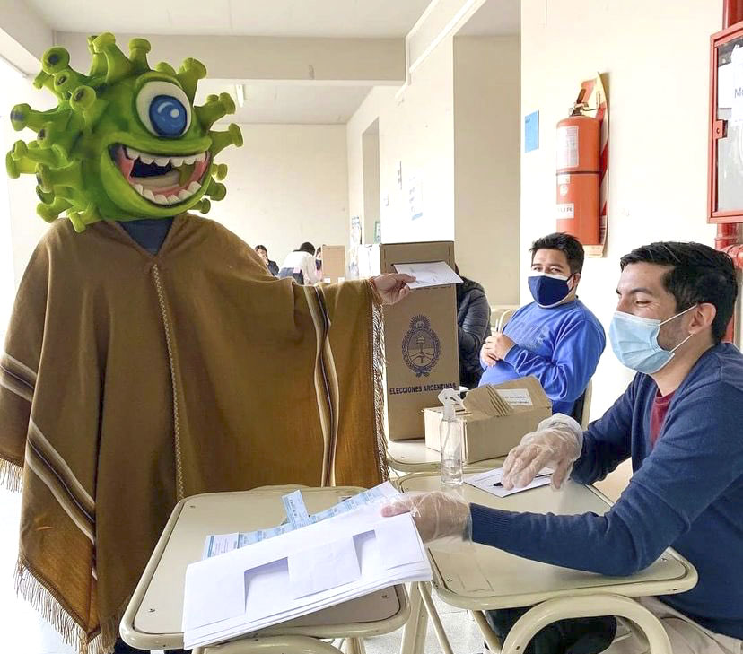 Una situación similar se dio en la provincia de Jujuy, donde un votante disfrazado como el virus del COVID-19 acaparó la atención y sorpresa de los presentes. En ese caso, el protagonista fue el influencer conocido como “El bicho jujeño”.
